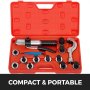 Dieser Rohrexpander wird mit 11 Rohrexpanderköpfen geliefert, die das Erweitern von 3/8" auf 1-5/8" Außendurchmesser erleichtern. Es ist mit einem scharfen Fräser zum Abschneiden des Rohrs und einem Entgratungswerkzeug ausgestattet, mit dem Grate, die beim Schneiden von Rohren zurückbleiben, leicht entfernt werden können.