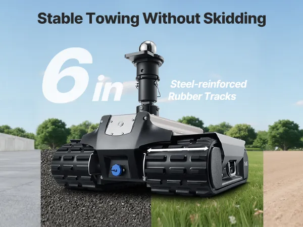 Meister des All-Terrains: Die 150 mm breiten, stahlverstärkten Gummiketten bieten Ihnen hervorragenden Grip, egal ob auf glattem Asphalt oder im Gelände. Rutschfest und stabil bewältigt dieser ferngesteuerte Anhängerrangierer jeden Untergrund souverän.