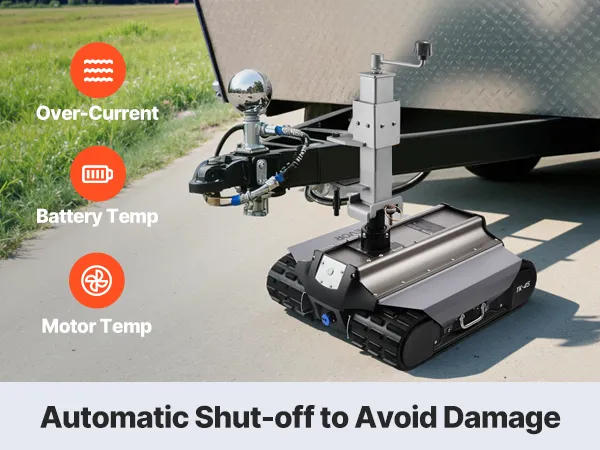 Dieser für Schwerlastzüge konzipierte Elektro-Dolly bietet leistungsstarke Leistung und einen reibungslosen Betrieb. Dank der extrem großen Reichweite, der Mehrwegelenkung und der Anti-Rutsch-Ketten lässt er sich leicht manövrieren. Zwei Anschlussmodi passen zu den meisten Anhängern und Wohnmobilen, und Sicherheitsfunktionen sorgen für ein sicheres Fahrgefühl.