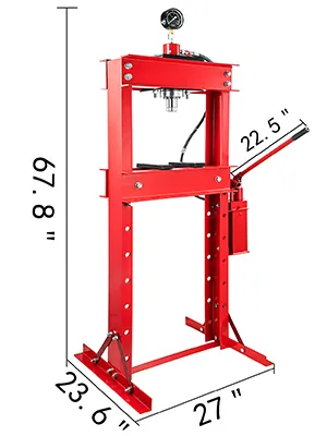 Entworfen für Ihre Garage oder einen professionellen Laden. Es ist ein ausgezeichnetes Werkzeug für den Heimmechaniker oder eine kleine Reparaturwerkstatt, mit dem Sie Metall leicht biegen oder begradigen, festsitzende Teile lösen, Lager austauschen und vieles mehr. Diese Presse hat eine Kapazität von 30 Tonnen und kann mit der manuellen Handpumpe verwendet werden.