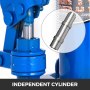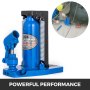 Blauer hydraulischer Wagenheber von VEVOR mit Maßangaben auf Griff und Sockel.