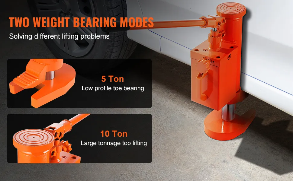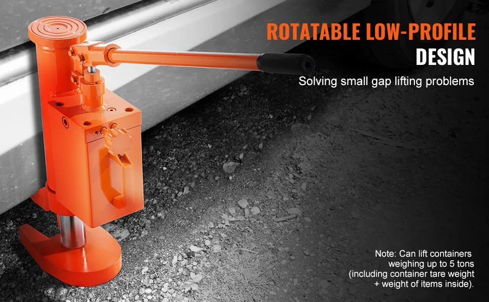 Dieser 5-Tonnen-Wagenheber hat eine maximale Hubkapazität von 10 Tonnen oder 22.000 Pfund. An der Spitze kann er bis zu 5 Tonnen (oder 11.000 Pfund) heben. Diese hohe Kapazität macht ihn ideal für schwere Hebeaufgaben. Er ist perfekt für Automobil- und Industrieanwendungen. Egal, ob Sie Fahrzeuge oder Maschinen anheben, dieser Wagenheber kann damit umgehen. Die robuste Bauweise sorgt dafür, dass er erhebliche Gewichte ohne Anstrengung bewältigen kann. Dies macht Hebevorgänge für eine Person einfach und durchführbar. Unsere hohe Tragfähigkeit erfüllt verschiedene industrielle Anforderungen. Sie können dieses leistungsstarke Werkzeug auch für professionelle Zwecke verwenden.