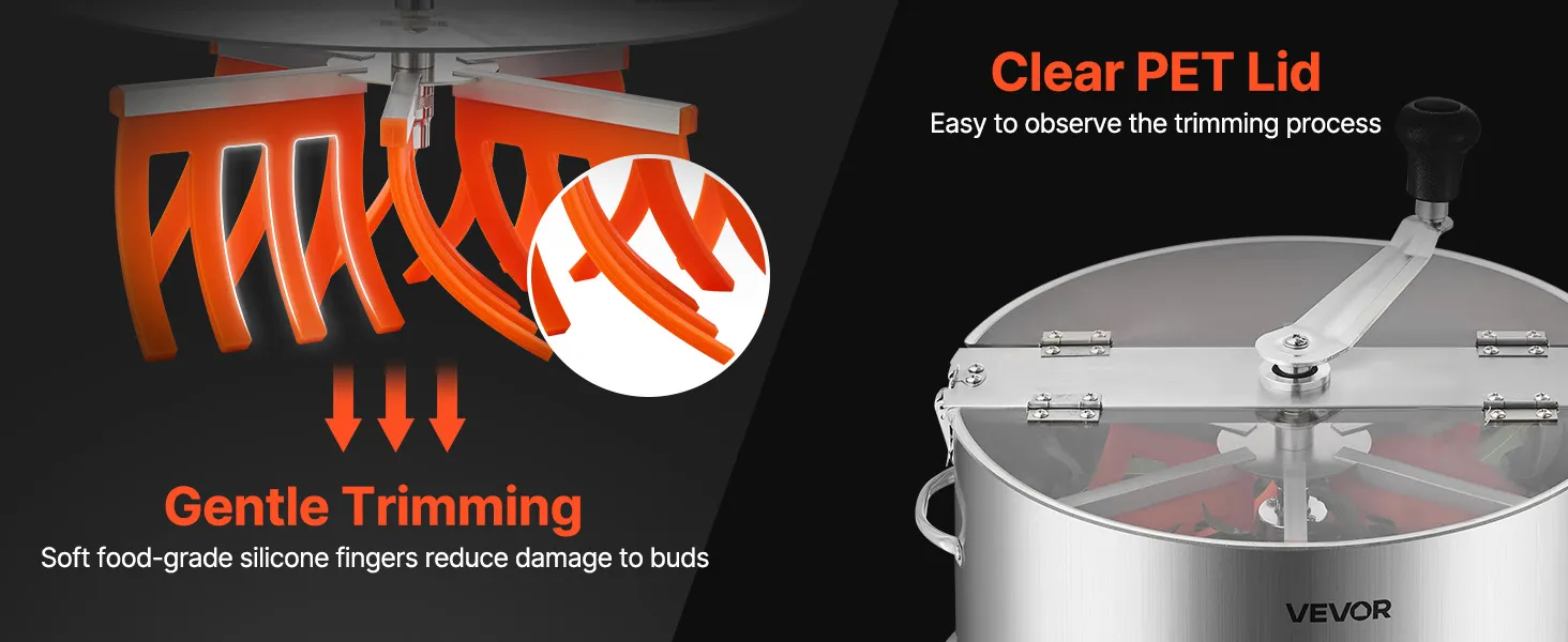 Hergestellt mit lebensmittelechten Silikonfingern, die Ihre Blüten sanft behandeln, Schäden reduzieren und die Pflanzenqualität erhalten. Trimmen Sie jedes Mal mit Sorgfalt und Sicherheit.