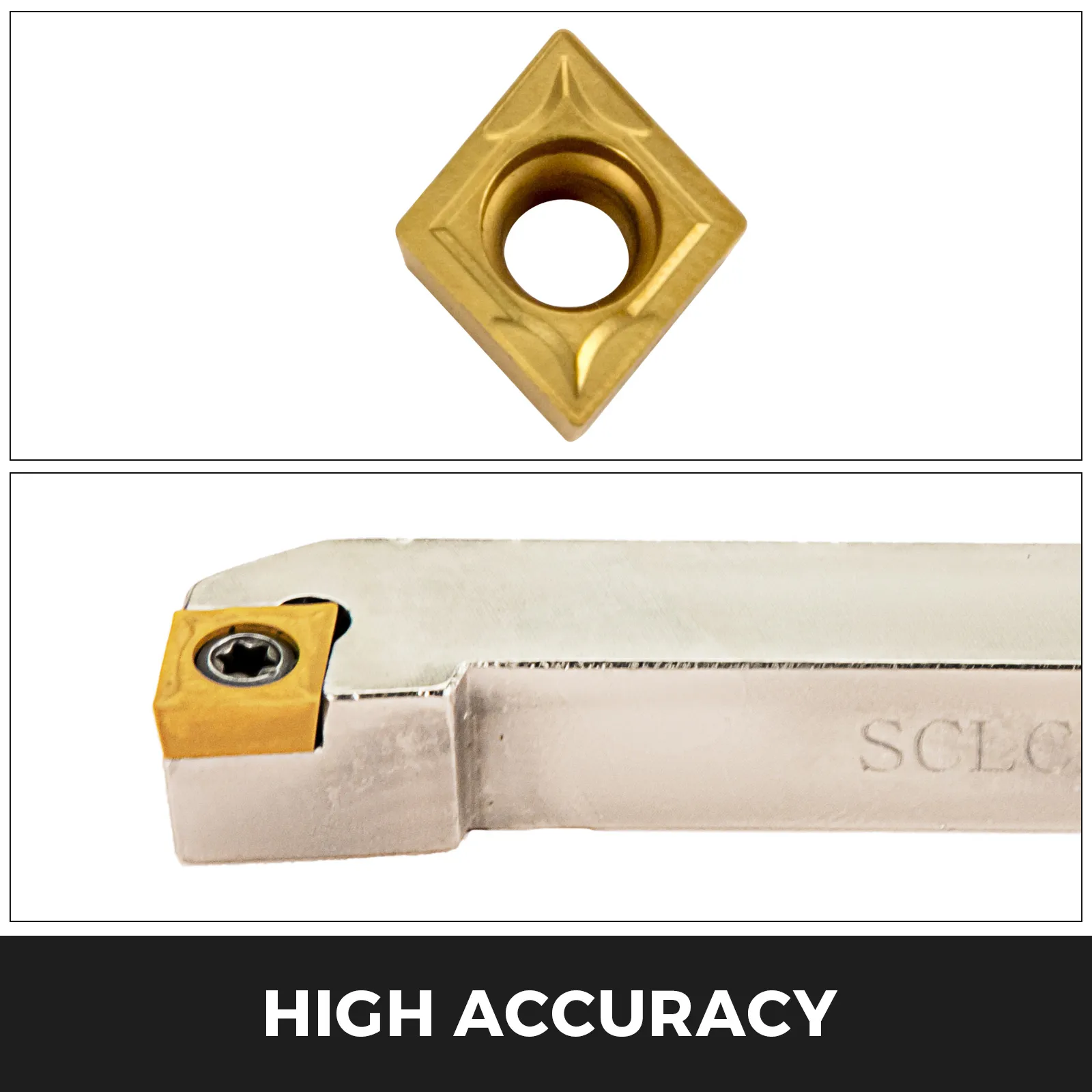 • 【ZUSÄTZLICHE ZUBEHÖRTEILE】 - Dieses Drehwerkzeugset wird mit Installationszubehör geliefert : 2 Schraubenschlüssel (2,5 mm) und 2 Ringschlüssel (T8), ein Satz Montageschrauben und ein Messer (95° CCMT09T304) bieten viel Komfort beim Verlängern die Lebensdauer dieser Metalldrehmeißel.