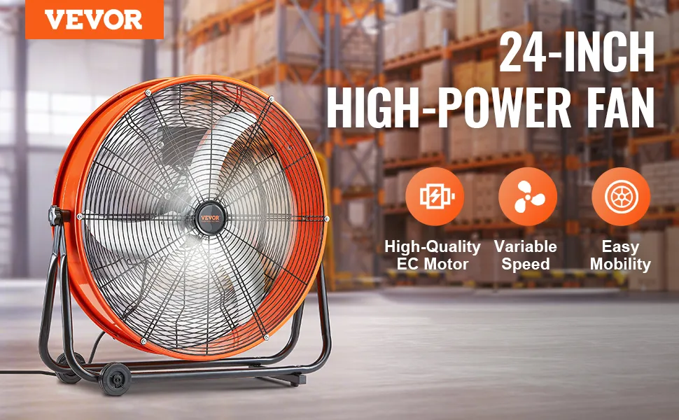 Der VEVOR-Industrieventilator verfügt über einen hochwertigen Motor. Sein spezielles Flügeldesign verbessert die Luftbewegung und sorgt für einen starken und stabilen Luftstrom für eine frische und angenehme Arbeitsumgebung.