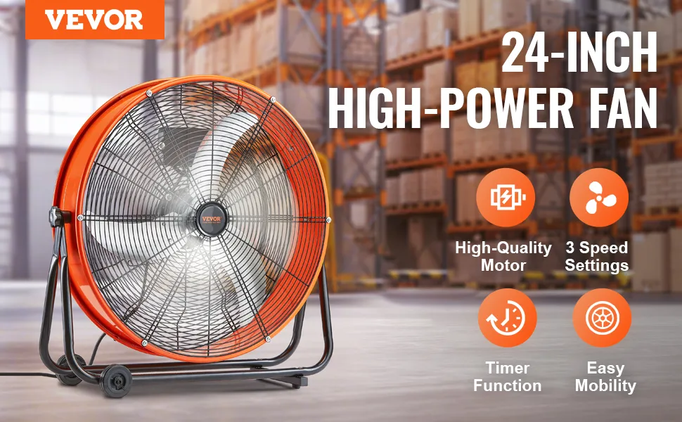 Der VEVOR-Industrieventilator verfügt über einen hochwertigen Motor. Sein spezielles Flügeldesign verbessert die Luftbewegung und sorgt für einen starken und stabilen Luftstrom für eine frische und angenehme Arbeitsumgebung.