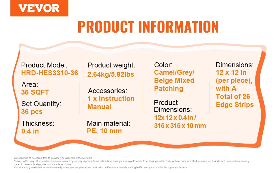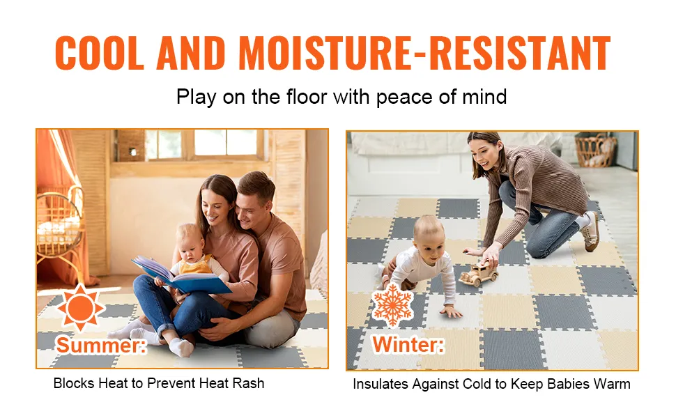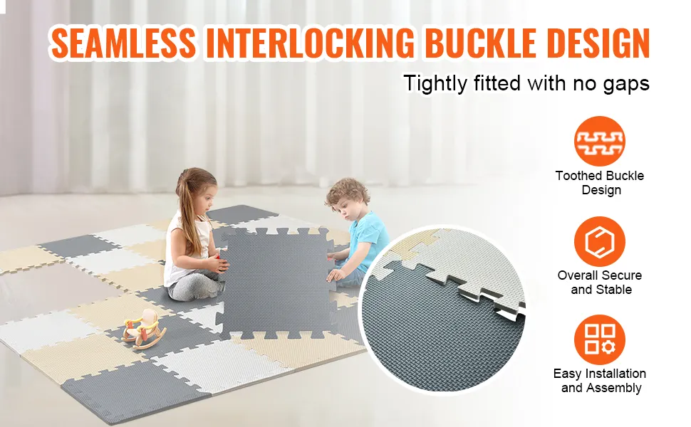 VEVOR Spielmatte für Kinder 36 Stk. Spielmatte mit EVA-Schaum, 315 x 315 mm Puzzle-Spielmatte mit 36 Quadratfuß Fläche, ineinandergreifende Kleinkindermatten für Spielzimmer Kamel & Grau & Beige