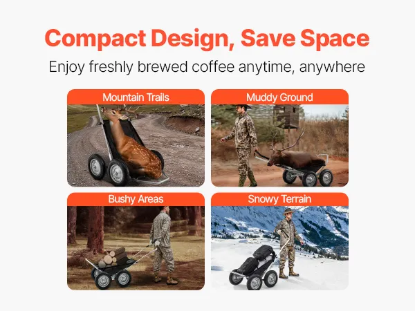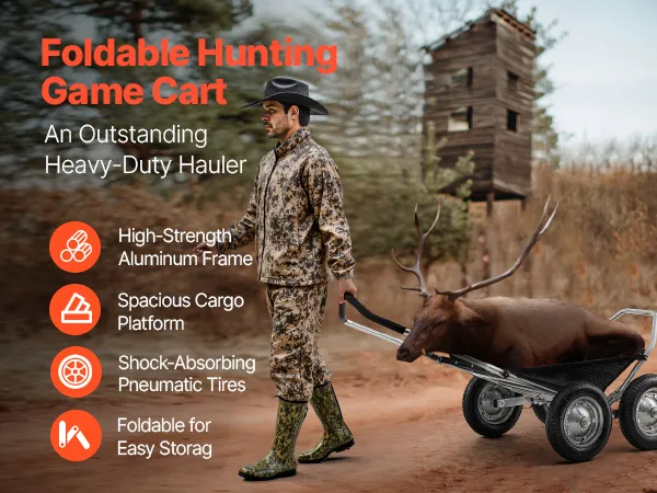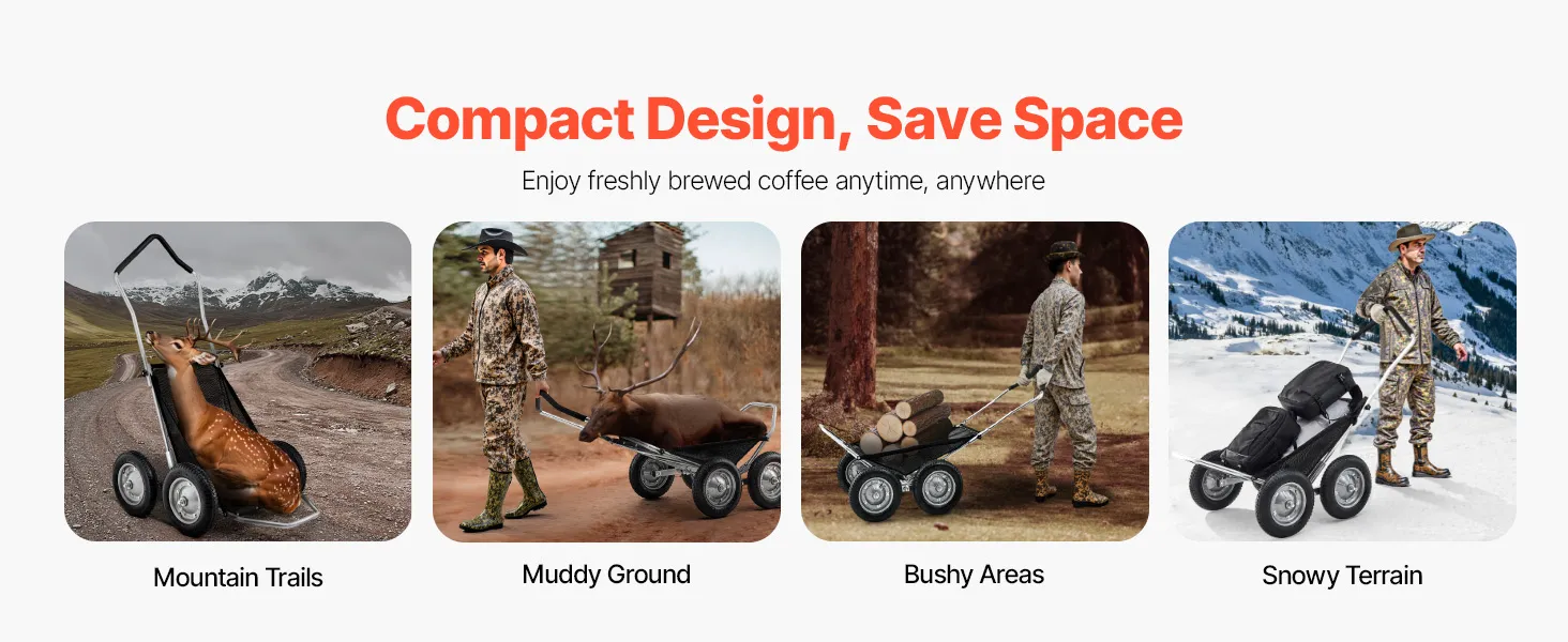 Vielseitig einsetzbar: Ideal zum Transportieren von Wild, Ausrüstung, Brennholz, Campingausrüstung oder Gepäck. Dieser Hirschwagen bewältigt problemlos verschiedene Gelände wie Buschland, Schnee und Bergpfade und erfüllt eine breite Palette von Transportanforderungen