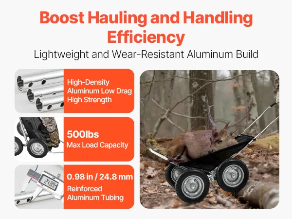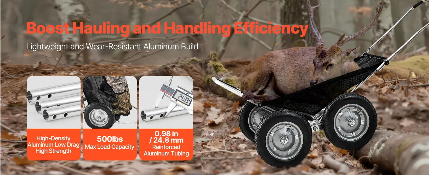 Dieser Hirschwagen mit hochdichtem Aluminiumrahmen trägt bis zu 227 kg und reduziert gleichzeitig den Zugwiderstand. Er ist biege- und bruchfest und gewährleistet so eine lange Lebensdauer für den Einsatz im Freien.