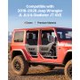 • Breite Kompatibilität: Diese Jeep-Rohrtüren sind für die 4-türigen Jeep Wrangler JL, JLU und Gladiator JT 4XE (Bj. 2018–2026) konzipiert und passen sowohl an die Vorder- als auch an die Hintertüren. Sie verbessern Sicht, Luftzirkulation und Wärmeableitung und machen Offroad-Fahrten noch abwechslungsreicher