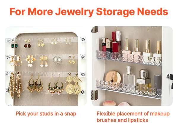 Der Spiegel mit Aufbewahrung verfügt über spezielle Ohrring- und Ohrsteckerschlitze, sodass Sie Ihren Schmuck separat aufhängen und ordnen können, um ihn schnell und einfach auswählen zu können.