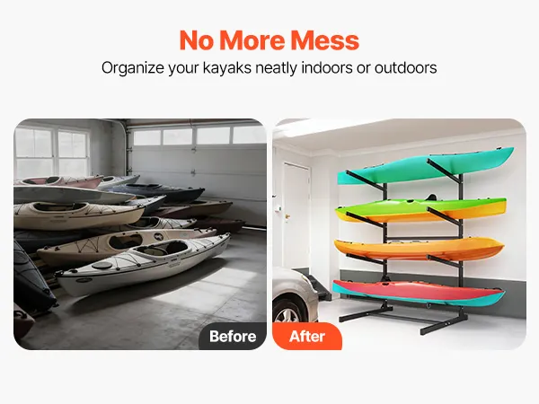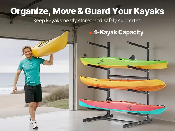Kapazität für 4 Kajaks: Dieses freistehende Kajak-Lagerregal bietet Platz für bis zu 4 Kajaks, Kanus oder SUP-Boards in einer ordentlichen, vertikalen Anordnung