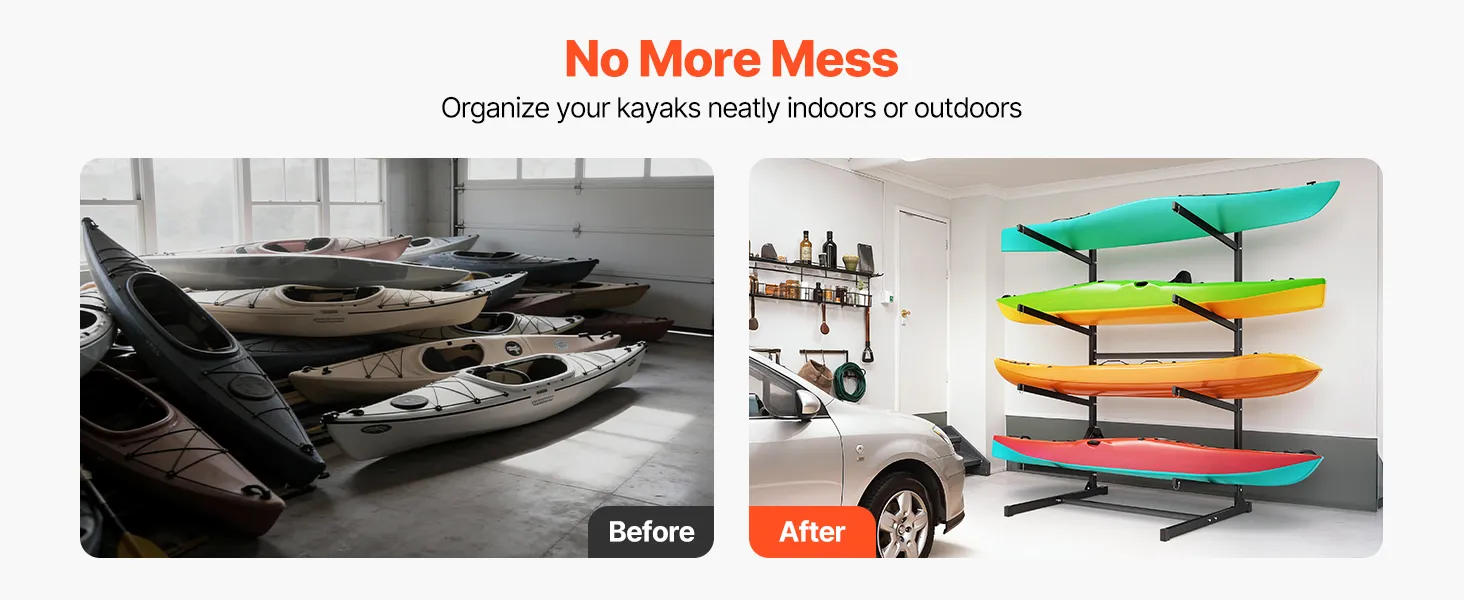 Vielseitige Anwendungsmöglichkeiten: Platzieren Sie dieses Kajakgestell in Garagen, Bootshäusern, Stegen, Verleihstationen oder auf Campingplätzen. Es hilft, Stauraum zu sparen, und sorgt gleichzeitig für Ordnung und Sauberkeit