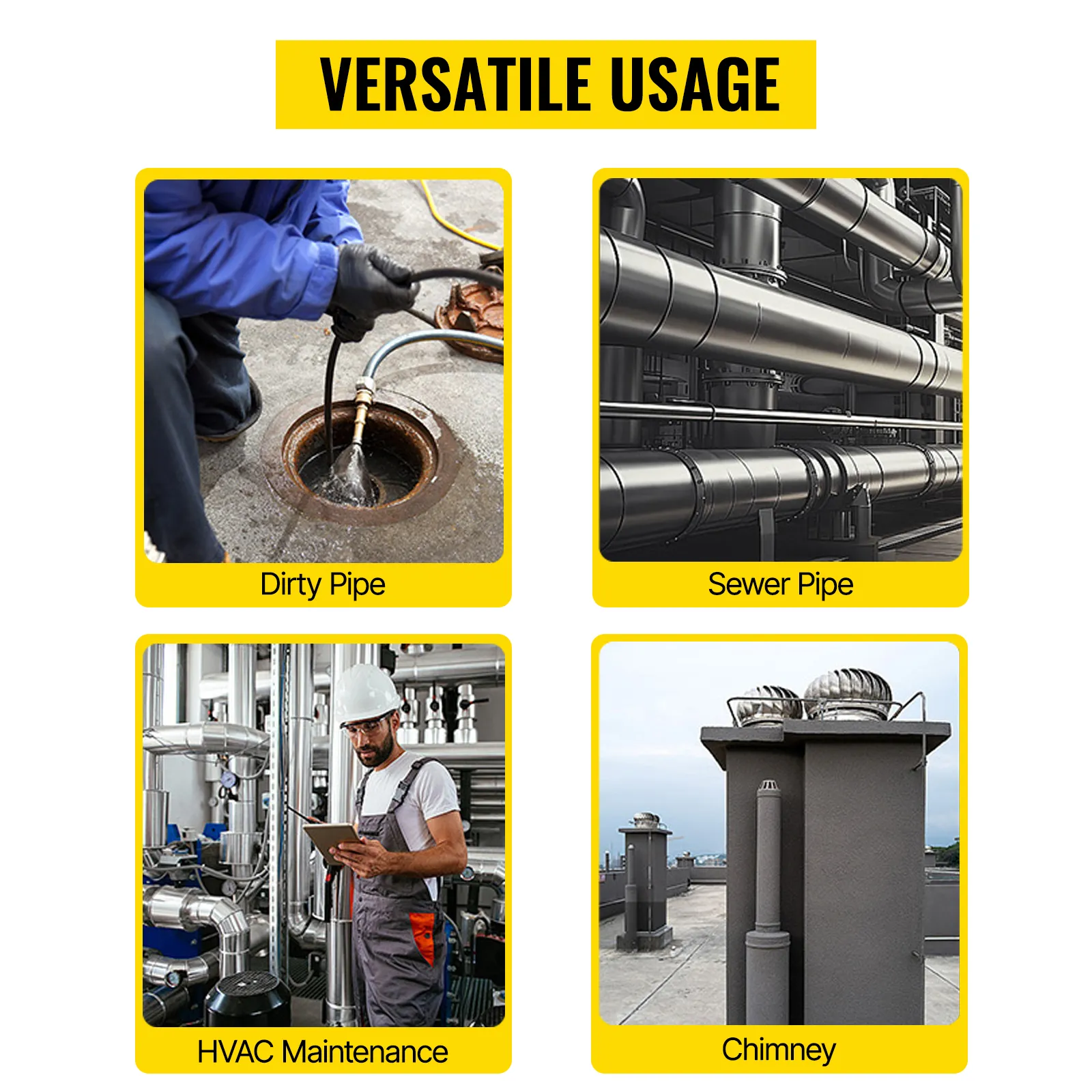Diese VEVOR-Kanalkamera hat keine Einschränkungen. Sie ist vielseitig einsetzbar und eignet sich für zahlreiche Szenarien zur effizienten Inspektion. Zu ihren Anwendungsgebieten gehören Elektroarbeiten, HVAC-Inspektionen und allgemeine Rohrinspektionen im Haushalt.