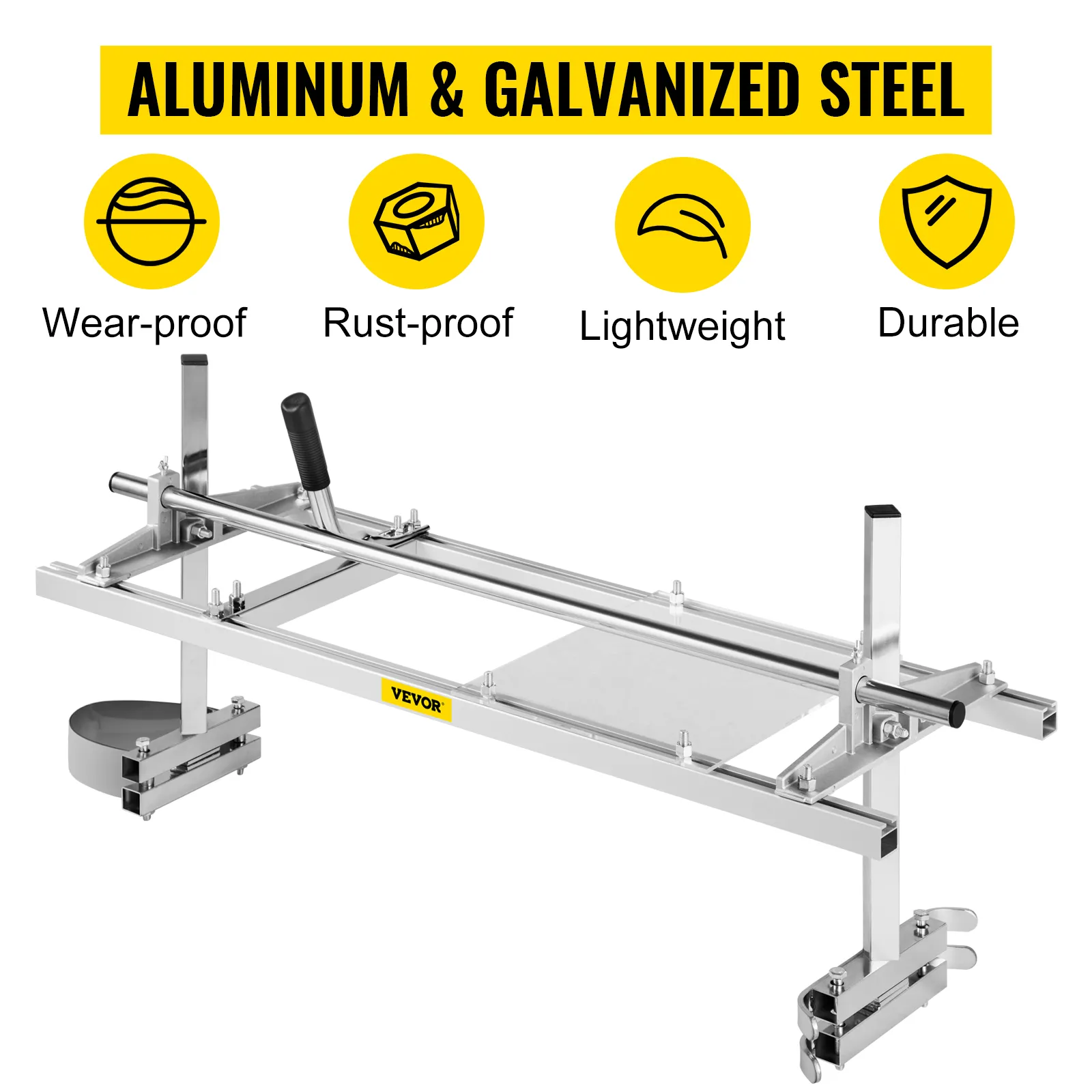 Das aus Aluminium und verzinktem Stahl gefertigte Kettensägewerk ist robust und langlebig und hilft Ihnen, die Kettensäge stabil zu halten, um ein perfektes Brett zu erhalten.