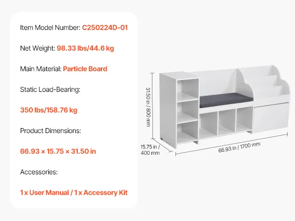 Langlebig & stabil: Mit einer maximalen Tragkraft von 350 lbs (158,76 kg) eignet sich die Spielzeugbank für die täglichen Aktivitäten von Kindern und auch für Erwachsene. Ob Sie darauf sitzen oder Gegenstände ablegen, sie bleibt stabil und behält auch nach längerem Gebrauch ihren guten Zustand