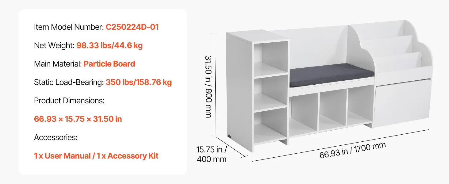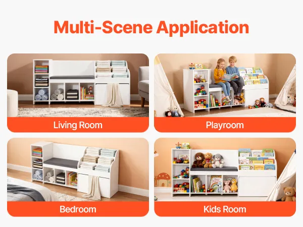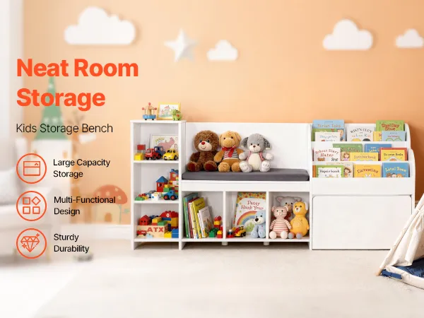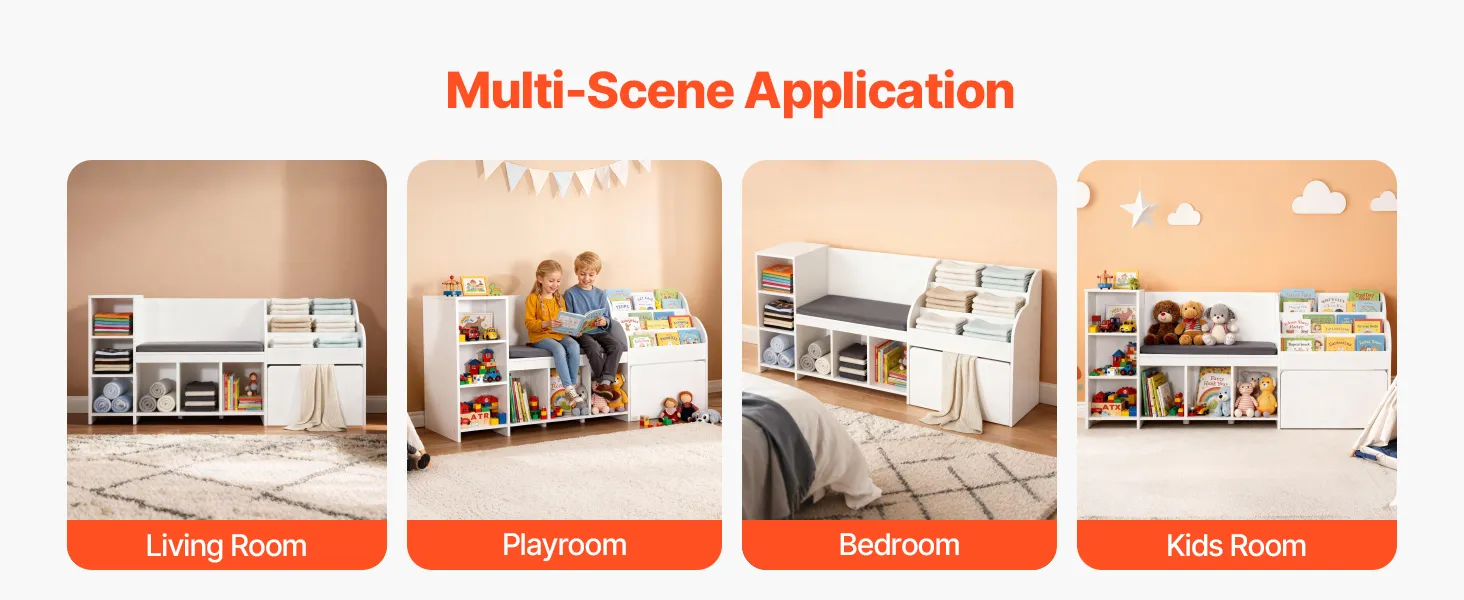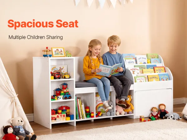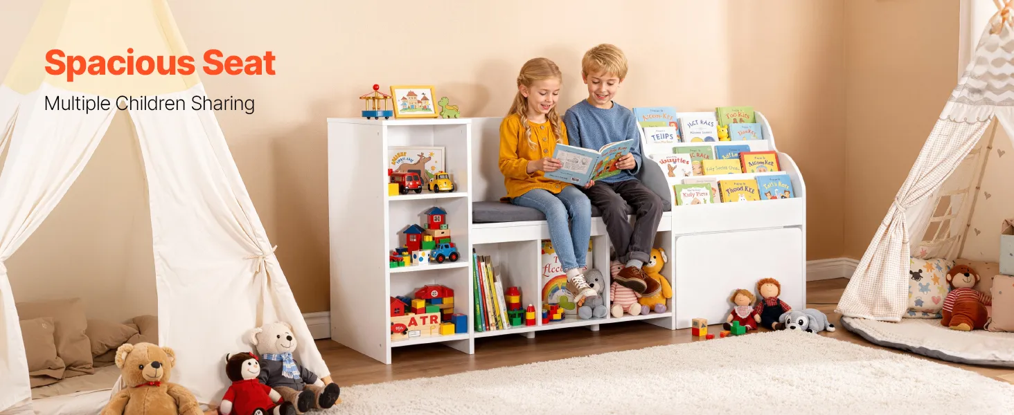 VEVOR Kinderregal mit Sitzbank & Rückenlehne & Bücherregal & Spielzeug-Organize, Spielzeugkiste Aufbewahrungstruhe für Spielzimmer Wohnzimmer Eingangsbereich, 170 x 40 x 80 cm, weiß