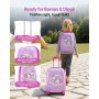 Der 457,2 mm große Kinder-Rollkoffer bietet Platz für Kleidung, Schuhe, Hygieneartikel und Spielzeug. Der Rucksack fasst Schulmaterial, elektronische Geräte, eine Trinkflasche und Snacks. So bleibt Ihr Kind auch auf Reisen und an anstrengenden Tagen ordentlich.