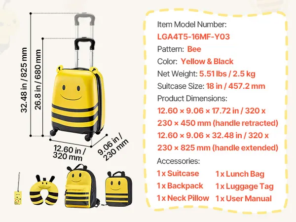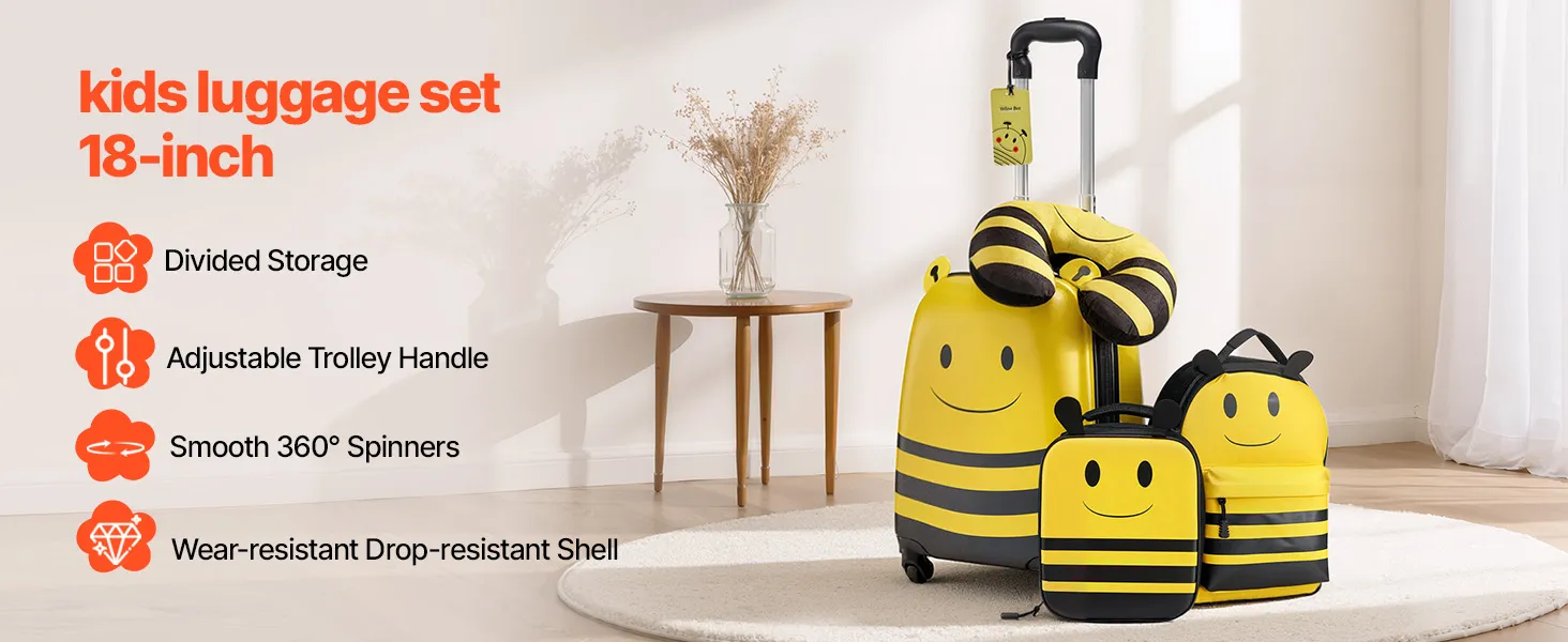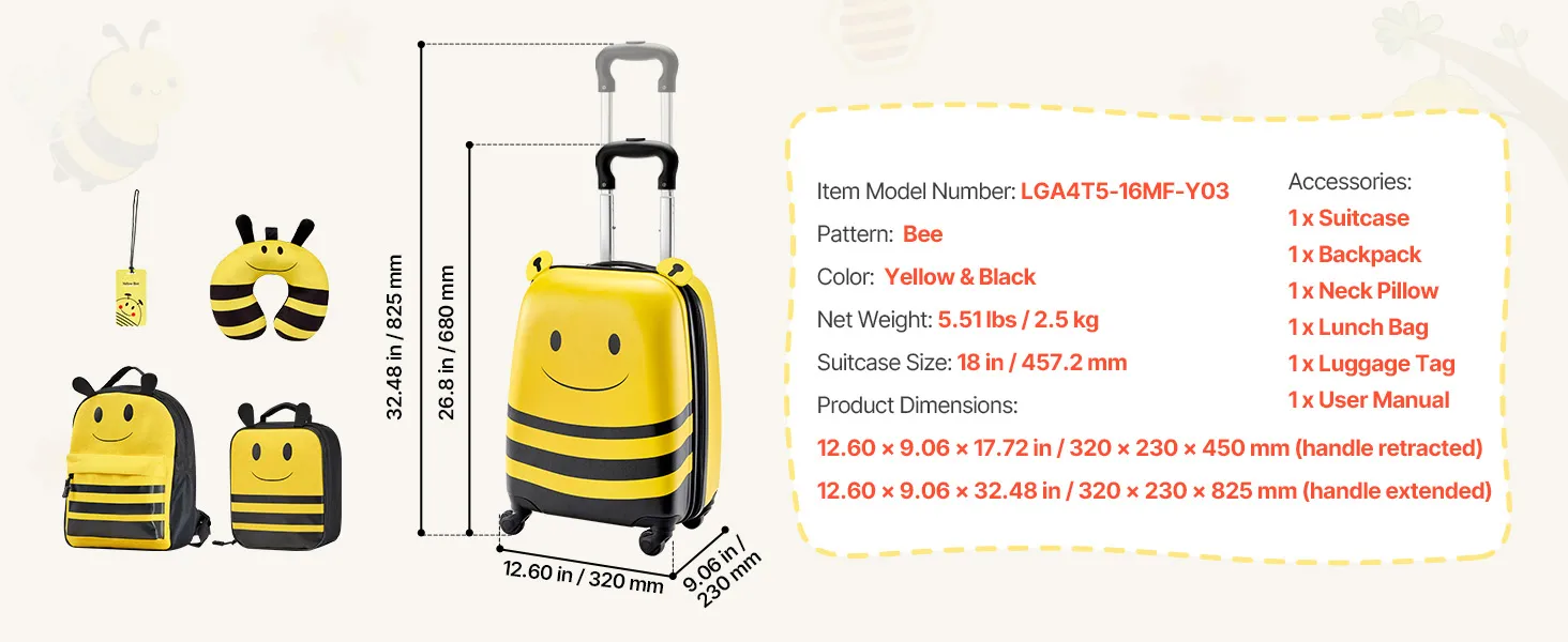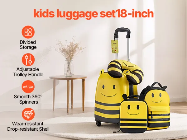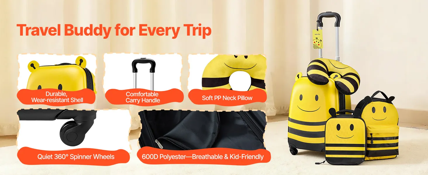 Fluggesellschaftszugelassenes 5-teiliges Set: Dieser 457,2 mm große Kinderkoffer mit passendem Zubehör entspricht den Handgepäckbestimmungen der Fluggesellschaften und ist ideal für Alleinreisende. Er enthält einen Rucksack, ein Kissen, eine Lunchtasche und einen Bordkartenhalter