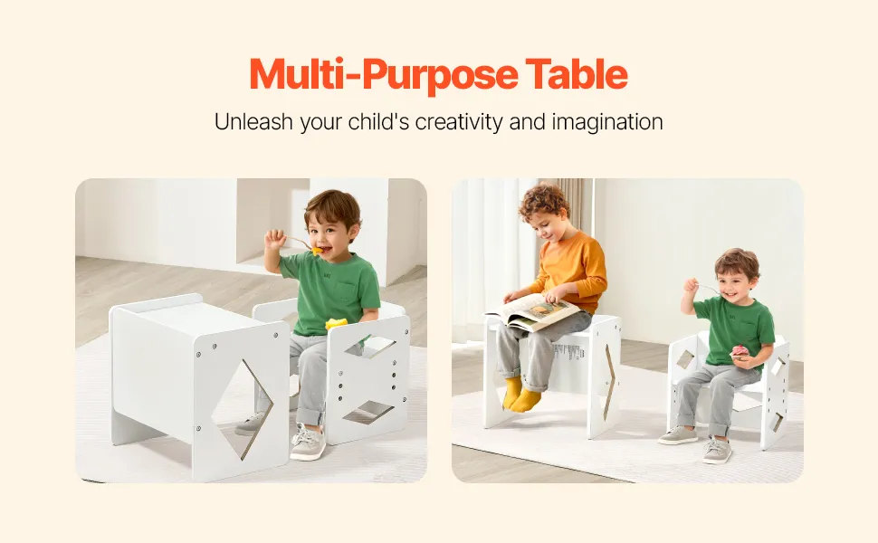 Unser Montessori-Tisch- und Stuhlset für die Entwöhnung dient als stabiler Stuhl und lässt sich schnell in eine geräumige Tischplatte verwandeln, sodass es für Kinder jeden Alters geeignet ist.