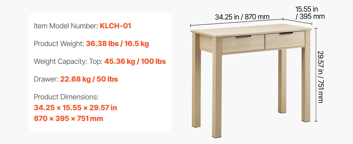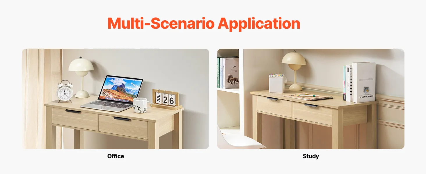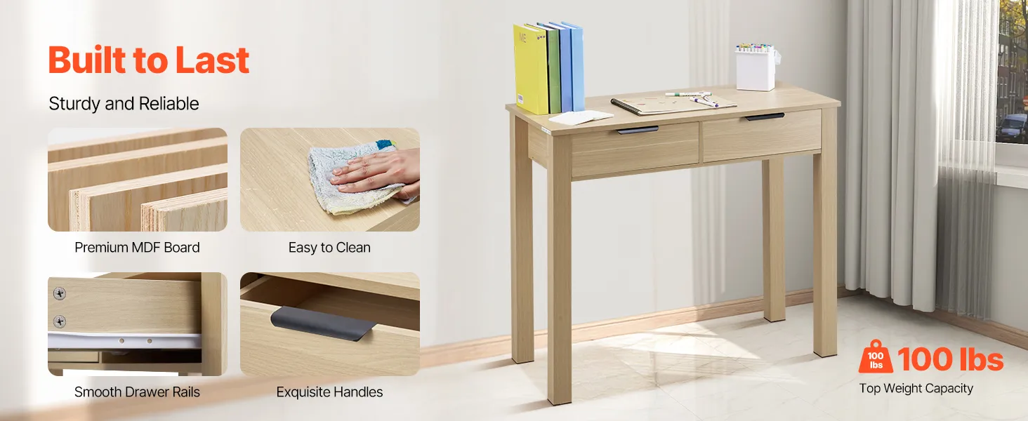 VEVOR kleiner Schreibtisch mit Schublade, Schreibtisch für Schlafzimmer, einfacher Arbeitstisch aus Holz zum Zeichnen, Lesen, rechteckiger Arbeitstisch aus MDF mit Regal für Büro Arbeitszimmer