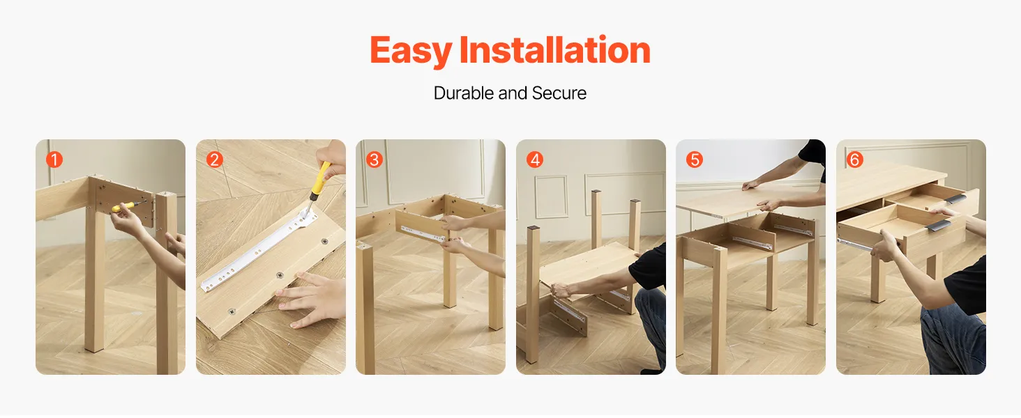 Leicht zu reinigen: Die Oberfläche des Schreibtischs mit Schubladen verfügt über eine doppelseitige Melamin-Laminat-Beschichtung und PVC-Kanten, ist glatt und fleckenbeständig und lässt sich zum Sauberhalten nur leicht mit einem feuchten Tuch abwischen