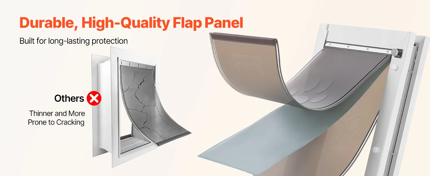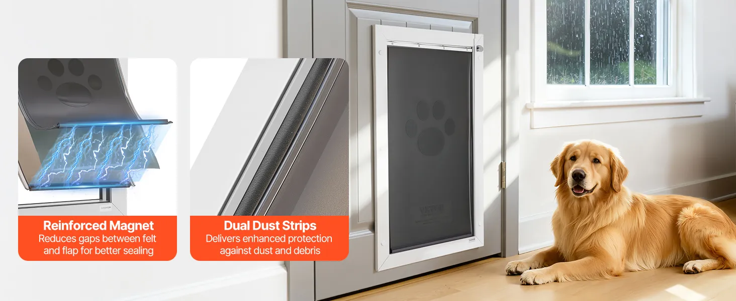 VEVOR Hundeklappe (XL) mit 3 Magnetklappen & Metallrahmen, Wetterfeste Katzenklappe für Innen- und Außentüren, Katzentür Hundetür Haustierklappe Weiß 34,61 x 60 cm (Breite x Höhe) Haustiertür