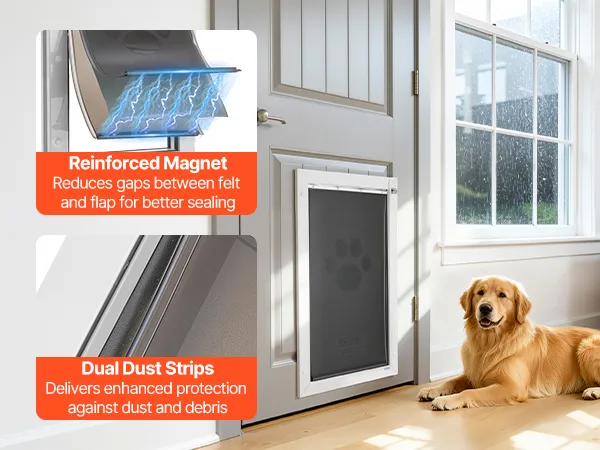 • Wind- und regendicht: Ein verstärkter Magnetverschluss sorgt für einen bündigen Sitz der Hundeklappe und hält so Zugluft, Regen, Staub und kleine ungebetene Gäste fern. Diese Hundeklappe für Türen trägt ganzjährig zu einem angenehmeren Wohnklima bei
