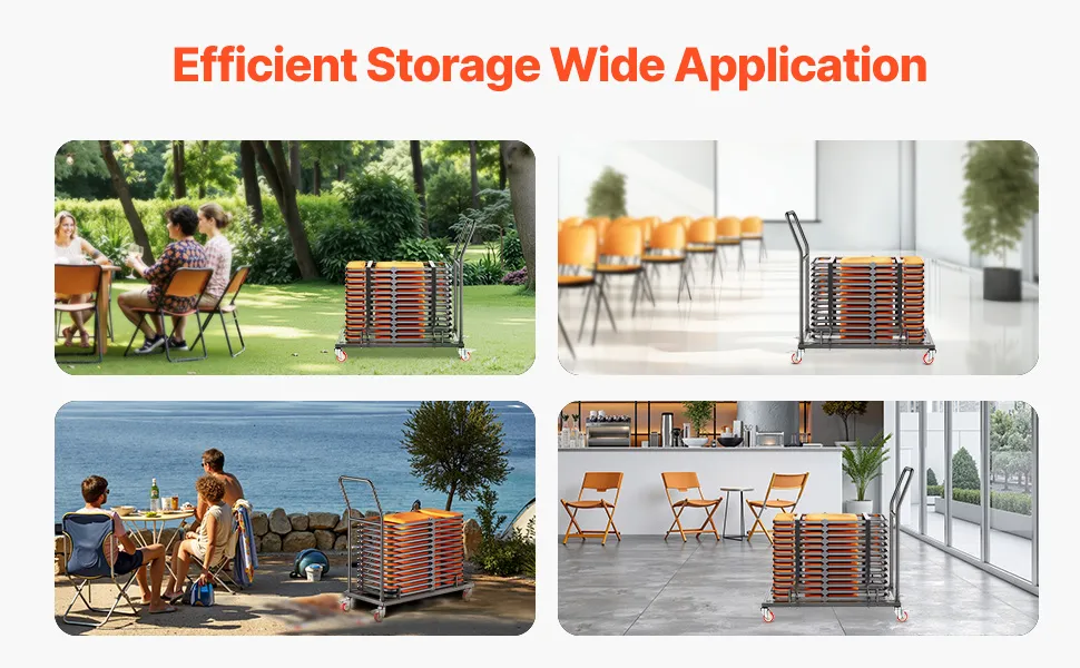 Vielseitige Einsatzmöglichkeiten: Das multifunktionale Klappstuhlgestell ist ein unverzichtbares Hilfsmittel für Kirchen, Gemeindezentren, Schulen, Unterhaltungseinrichtungen, Schulungs- und Konferenzräume. Es erleichtert mühelos das Bewegen, Anordnen und Aufbewahren von Esszimmerstühlen und hilft Ihnen, wertvolle Zeit und Energie zu sparen.