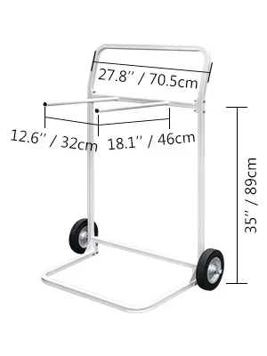Das langlebige Produkt ermöglicht eine hohe Tragfähigkeit von 220 Pfd mit stabilen Kleiderbügeln von 46 cm. Es kann 10 bis 12 Klappstühle gleichzeitig aufnehmen.