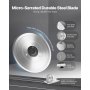 Unsere Edelstahlklingen mit präzisem Wellenschliff zeichnen sich durch extreme Härte und langanhaltende Schnitthaltigkeit aus – für stets gleichmäßige und zuverlässige Ergebnisse.