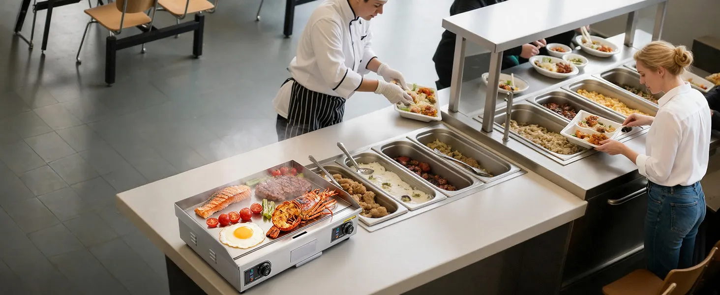 Das effiziente Wärmeableitungsdesign dieser gewerblichen Grillplatte gewährleistet eine schnelle Abkühlung und eine stabile Leistung auch bei längeren Kochvorgängen.