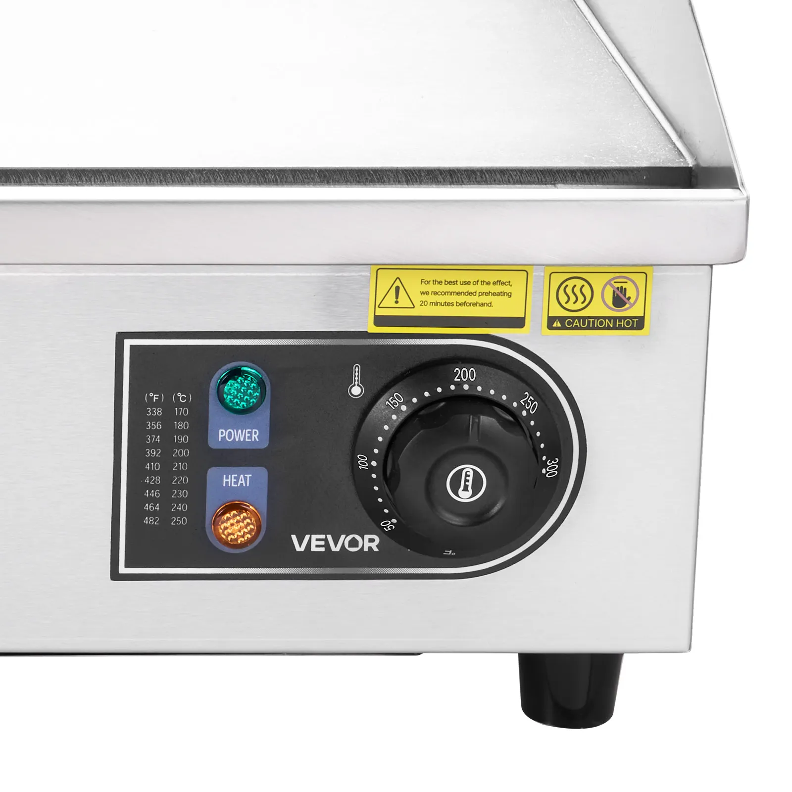 VEVOR Elektro-Grillplatte 4000 W 655 x 400mm Grillbereich, 50-300 °C Gastro-Griddleplatte aus Edelstahl (Gehäuse) Tischgrillplatte mit 2 Spateln 2 Bürsten & 4 Fußpolstern für Steaks BBQ, Ohne Stecker