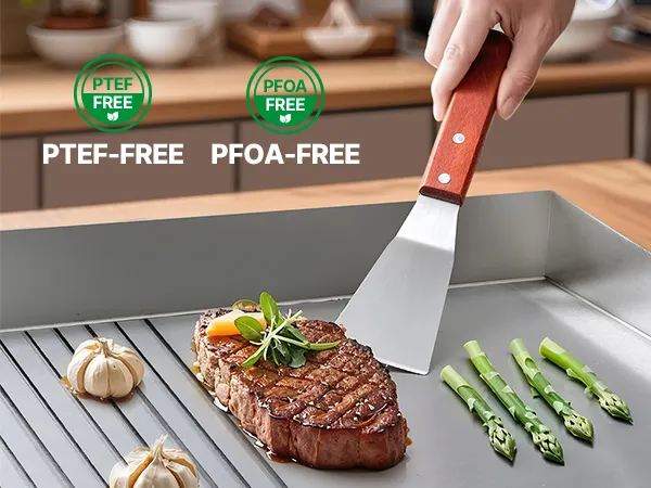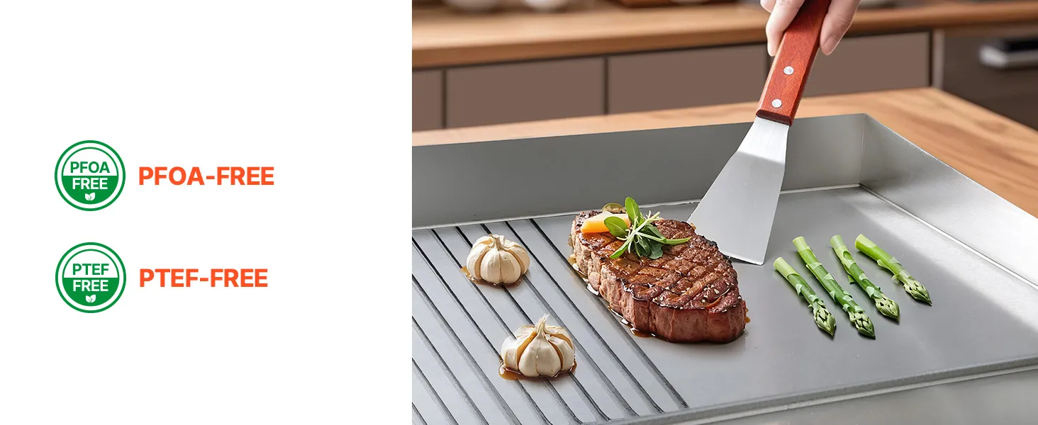 • Genießen Sie unbeschwertes Essen: Der hochwertige Edelstahlkorpus und die PFOA/PTFE-freie Kochfläche aus Gusseisen der Grillplatte sorgen für lange Haltbarkeit und ein gesünderes Kocherlebnis