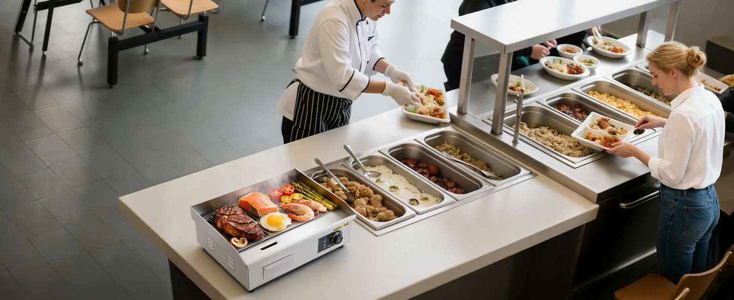 Das effiziente Wärmeableitungsdesign dieser gewerblichen Grillplatte gewährleistet eine schnelle Abkühlung und eine stabile Leistung auch bei längeren Kochvorgängen.