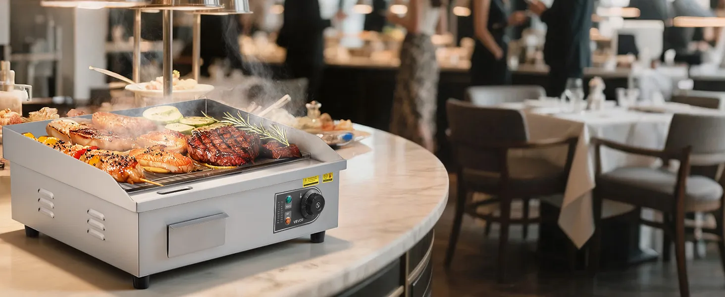 • Für vielfältige Speisen & Anlässe: Dieser Profigrill eignet sich ideal für den privaten oder gewerblichen Gebrauch, z. B. in Restaurants, Geschäften und Imbissständen. Er ist geeignet für Pfannkuchen, Speck, Käse, Omeletts, Pizza, Steaks und Burger