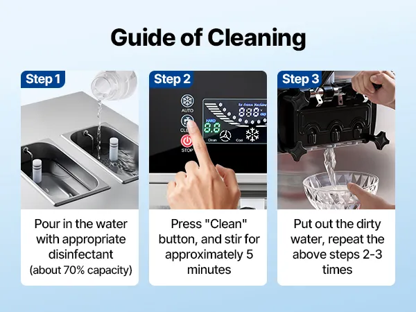 Einfache Bedienung: Das LED-Display vereinfacht die Bedienung durch integrierte Funktionen wie Härtegradeinstellung, Frischhaltung und Selbstreinigung per Knopfdruck. Es löst außerdem einen Alarm aus, wenn der Füllstand der Zutaten unter den Sollwert sinkt und fordert so rechtzeitiges Nachfüllen auf