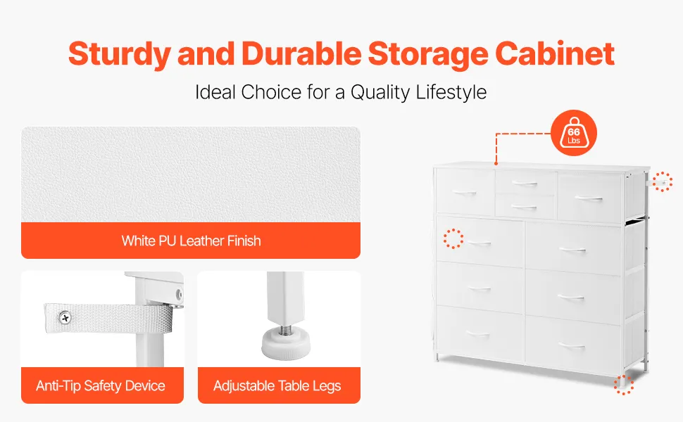 Ausgewählte Materialien: Die Schrankkommoden sind aus atmungsaktivem Vliesstoff gefertigt und mit PU-Leder veredelt, sodass Ihre Gegenstände belüftet bleiben und die tägliche Reinigung zum Kinderspiel wird