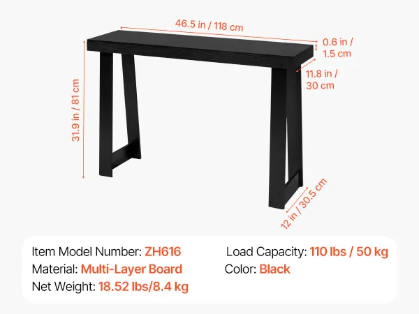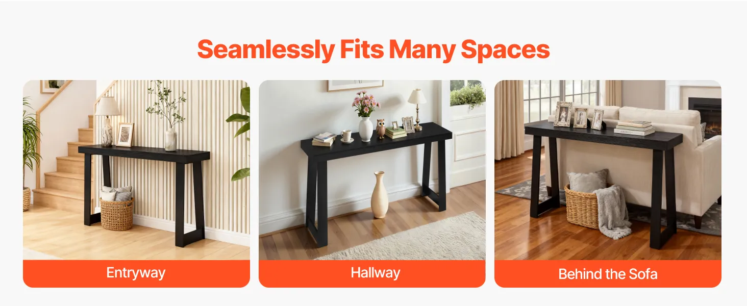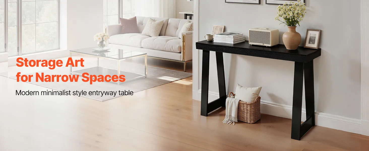 VEVOR Konsolentisch Eingangtisch hinter dem Sofa (118 x 30,5 x 81 cm / L x B x H), rechteckiger Beistelltisch aus Mehrschichtplatte für Flur Schlafzimmer Wohnzimmer Foyer, Flurtisch Schwarz