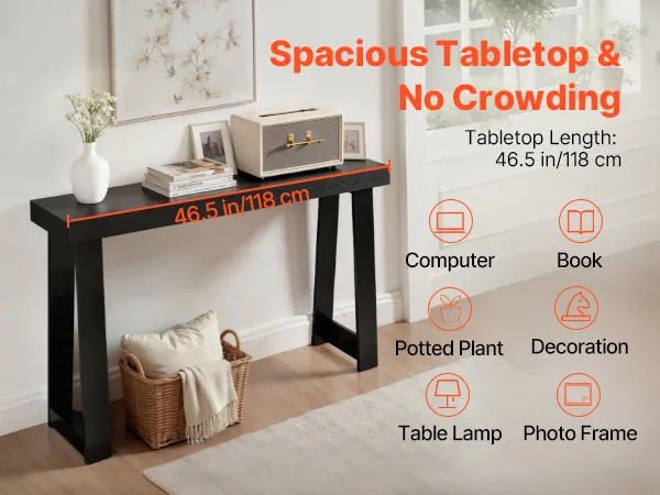 Optimale Raumnutzung: Mit seinen Maßen von 46,5 x 12 x 31,9 Zoll (118 x 30,5 x 81 cm) passt dieser Konsolentisch flexibel hinter Sofas oder in lange Flure. Sein kompaktes Design spart Stellfläche und bietet gleichzeitig Platz zum Präsentieren oder Aufbewahren Ihrer Lieblingsstücke