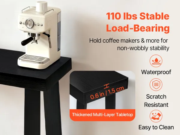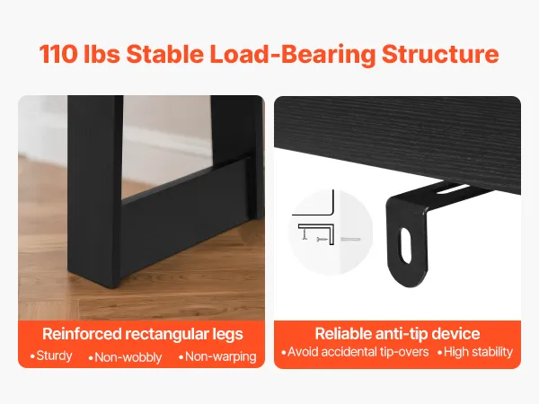 Robust und langlebig: Unser Eingangtisch besteht aus 0,6 Zoll (15 mm) starker Spanplatte mit rechteckiger Basis und trägt bis zu 110 lbs (50 kg). Er bleibt auch mit Kaffeemaschinen darauf stabil. Eine Kippsicherung ist im Lieferumfang enthalten – bitte vor Gebrauch anbringen