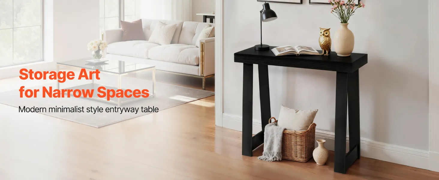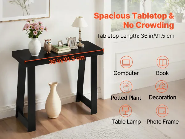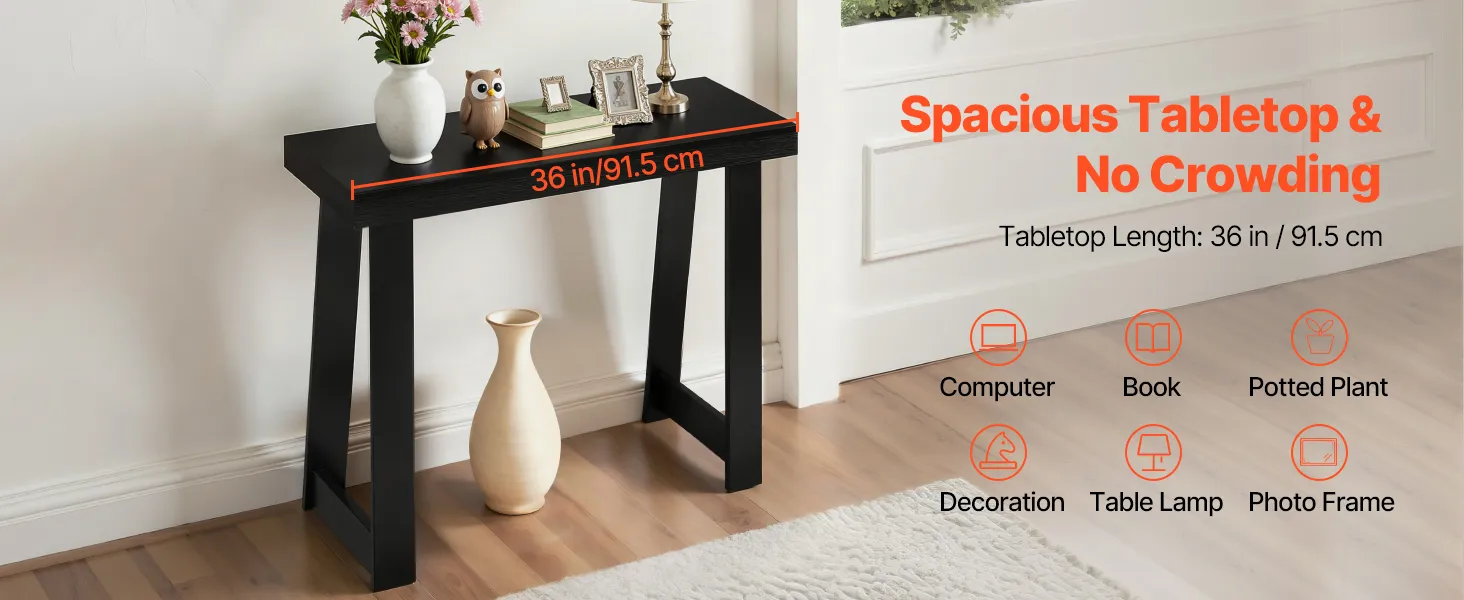 VEVOR Konsolentisch Eingangtisch hinter dem Sofa (91,5 x 30,5 x 81 cm / L x B x H), rechteckiger Beistelltisch aus Mehrschichtplatte für Flur Schlafzimmer Wohnzimmer Foyer, Flurtisch Schwarz Modern