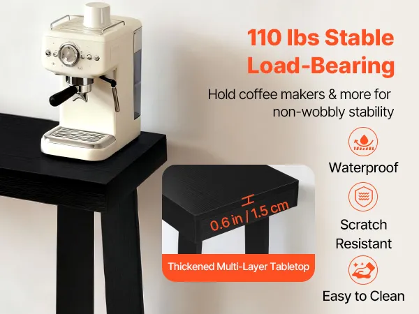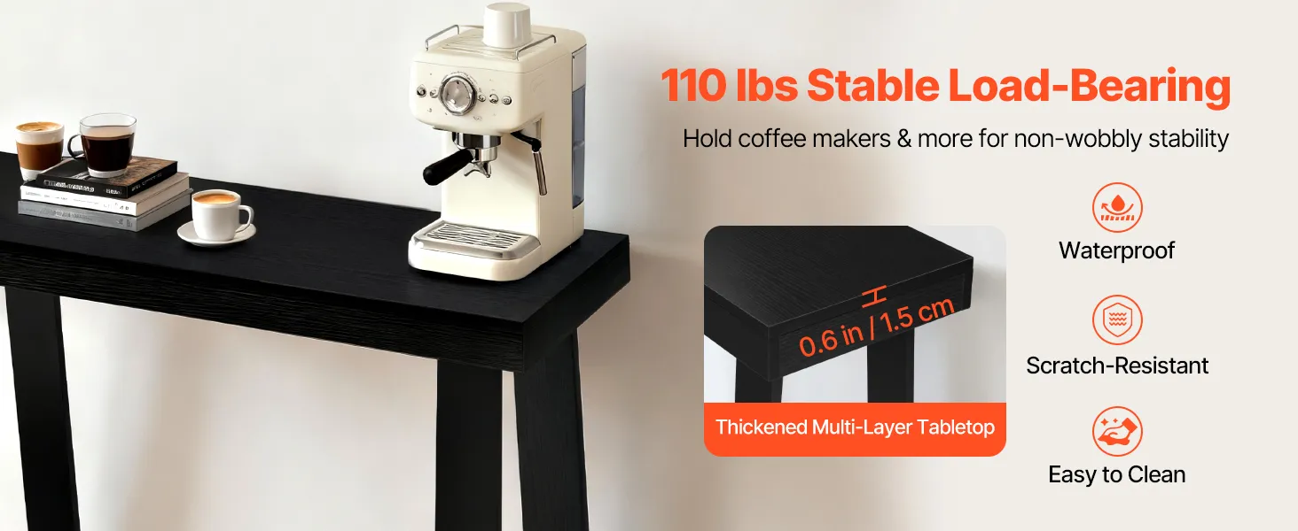Robust & langlebig: Unser schmaler Eingangtisch besteht aus 0,6 Zoll (15 mm) starker Spanplatte mit rechteckiger Basis und trägt bis zu 110 lbs (50 kg). Er bleibt auch mit Kaffeemaschinen darauf stabil. Eine Kippsicherung ist im Lieferumfang enthalten – bitte vor Gebrauch anbringen