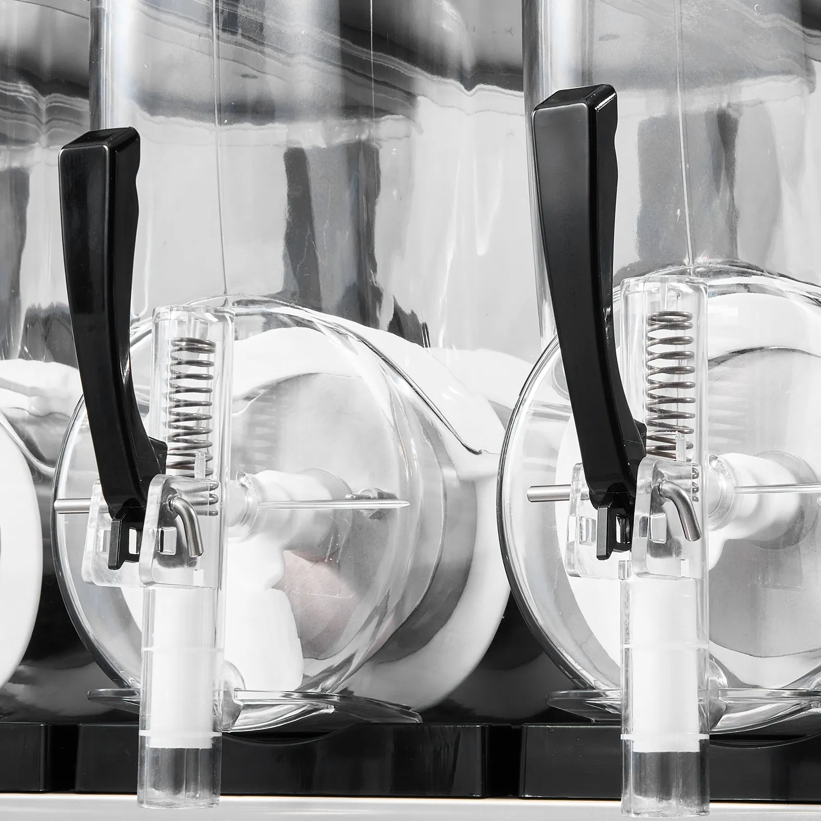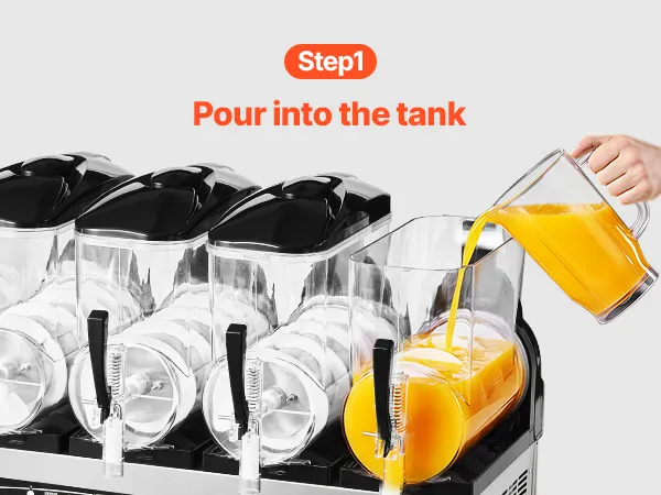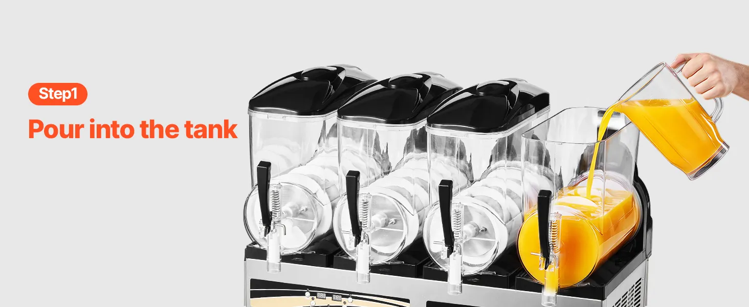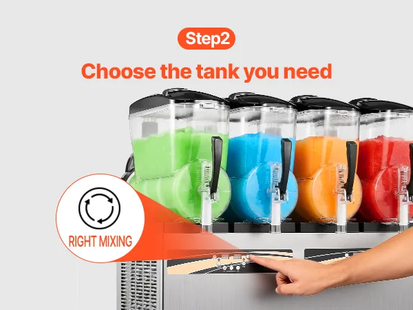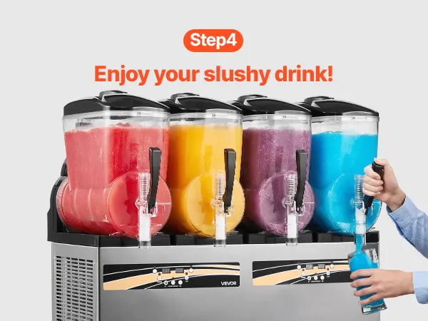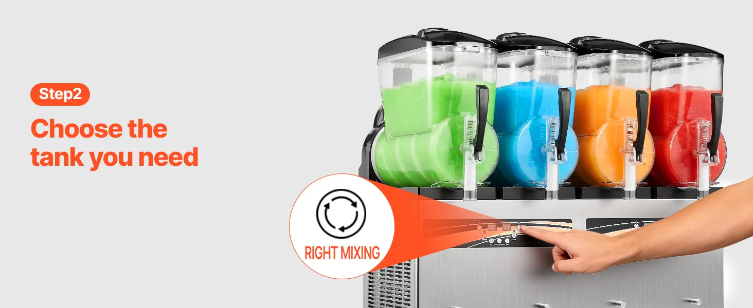 4 unabhängige Tanks: Mit vier 12 L Tanks (3,17 Gallonen) kann diese Slush-Maschine pro Durchgang ca. 192 Becher Slush-Getränke zubereiten. Jeder Tank kann unabhängig genutzt werden. Dank seltenerem Nachfüllen ist sie ideal für stark frequentierte Gastronomiebetriebe. Der transparente Tank setzt die farbenfrohen Getränke perfekt in Szene und macht die Maschine zur idealen Ergänzung für Eisdielen, Burgerläden, Cafés, Bars und andere Gastronomiebetriebe