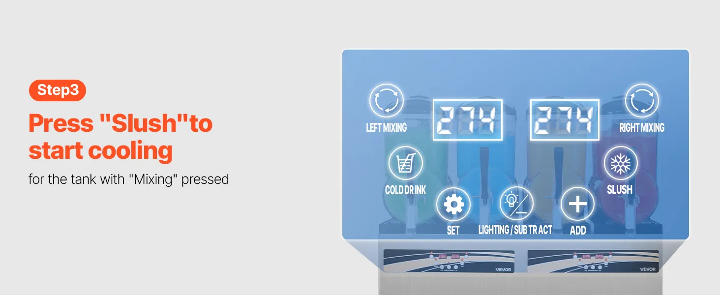 Einfache Bedienung: Das benutzerfreundliche Bedienfeld ermöglicht eine einfache Handhabung und bietet zwei Betriebsmodi (Slush-Eis und Kaltgetränke), automatische Reinigung, Temperaturregelung und Zeiteinstellungen. Die Temperatur wird übersichtlich auf dem digitalen Display angezeigt und ist somit jederzeit leicht ablesbar
