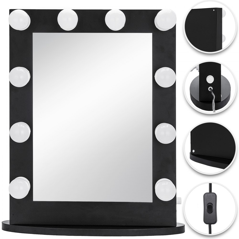 Dieser beleuchtete Kosmetikspiegel ist mit zwölf LED-Lampen am Spiegelrand ausgestattet. Wir bieten Ihnen auch zwei weitere Lampen zum Austausch an.