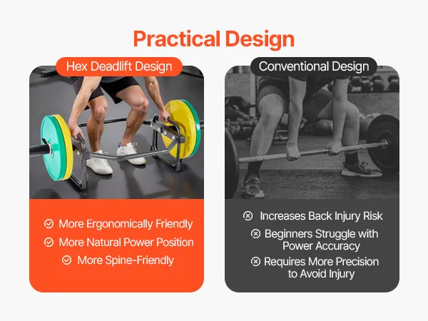 Das sechseckige Kreuzhebe-Design ist speziell darauf ausgelegt, Ihre Hebehaltung zu verbessern und Ihre Wirbelsäule beim Heben schwerer Lasten zu schützen.