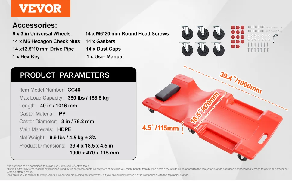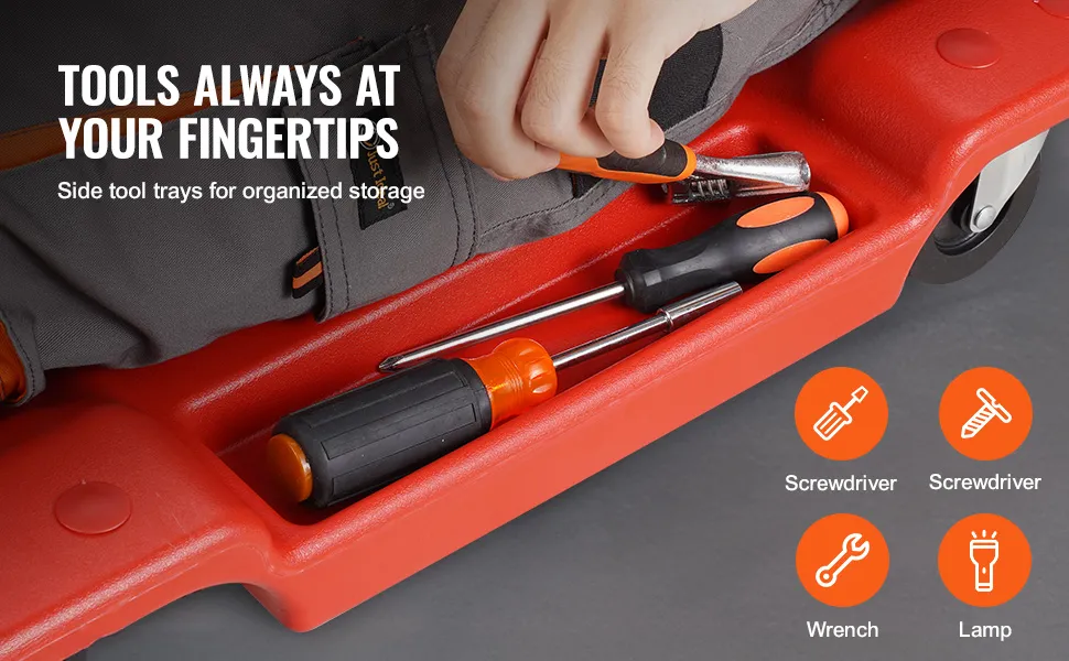 Mit seinen Rädern und einer Tragkraft von 158,8 kg passt unser 1 m Rollbrett problemlos unter enge Fahrzeuge und bietet sicheren Halt. Bietet lang anhaltenden Komfort. Die Werkzeugablage sorgt dafür, dass Ihre Werkzeuge immer griffbereit sind und steigert so Ihre Produktivität.
