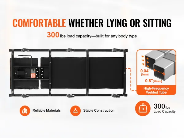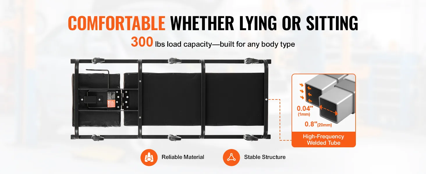 Made from high-strength structural steel, this garage lounger supports your entire body weight without bending or collapsing, ensuring stability whether you are lying down or sitting.
