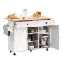 VEVOR Kitchen Island Cart, with Solid Wood Top and Storage Cabinet, Mobile Rolling Table with Drop Leaf, Drawers, Spice Towel Rack, Portable Islands on Swivel Wheels for Dining Room, 132cm Width, White